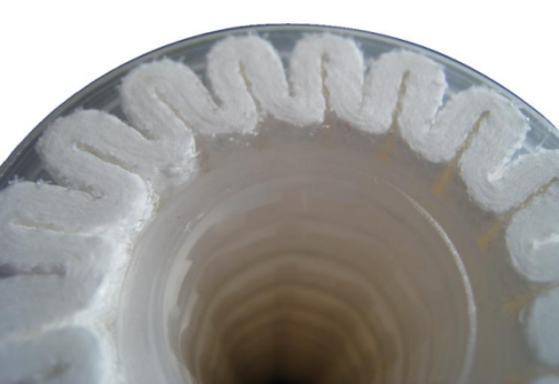 PP 微孔折疊濾芯是由超細聚丙烯纖維膜及無紡布或 (絲網)內外支撐層折疊而成,濾芯外殼、中心桿及端蓋均采用熱熔焊接技術加工而成,不含任何膠合劑、無泄漏、無二次污染