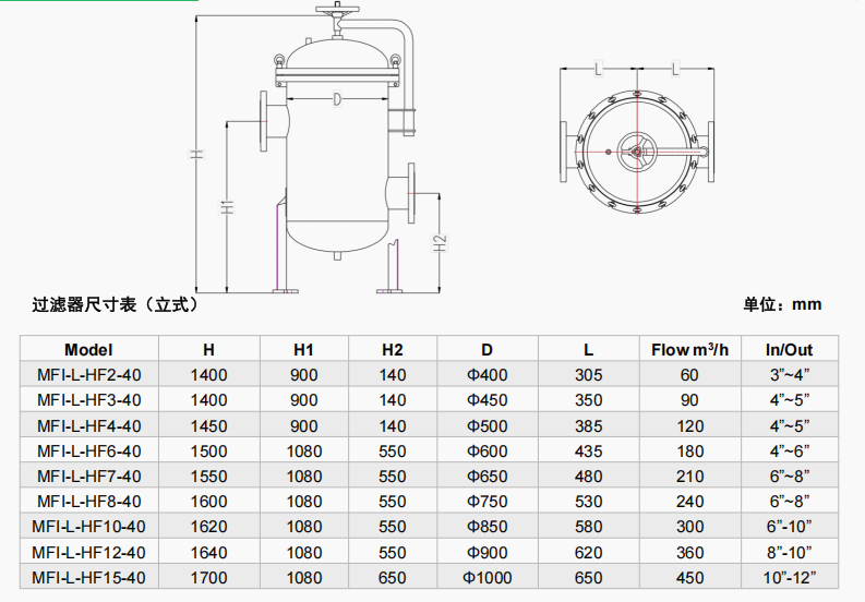 采用獨特的設計,使單個濾芯的流量正常在25~30m3/h,,因此僅需更少的濾芯即可滿足較大的流量要求。